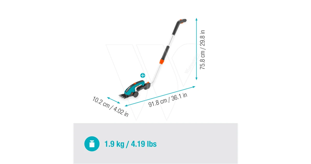 De GARDENA Grasschaar ClassicCut Li Set helpt je de gazonranden nauwkeurig te maaien en een prachtig gesnoeide vorm te snoeien in kleine struiken zoals buxussen. De set bevat een 8 cm breed grasmes en een telescopische steel. Het blad is precisiegeslepen en heeft een antikleeflaag voor langdurige scherpte. Dit zorgt voor een nauwkeurige, soepele en nette snede. Het grasmes is een in Duitsland vervaardigd kwaliteitsproduct. Dankzij zijn smalle ontwerp en ergonomische handgreep, past de schaar makkelijk in je hand en is hij gemakkelijk langs de grond te leiden.