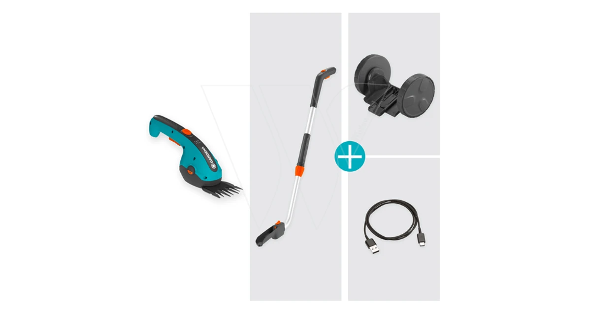 Je kan de GARDENA Grasschaar ClassicCut Li Set opladen met de inbegrepen USB-C-kabel. Je verwisselt het mes gemakkelijk en snel met een druk op de knop. Het afzonderlijk verkrijgbaar Buxusmes (art. nr. 9863-20) verandert de ClassicCut Li in een buxusschaar.