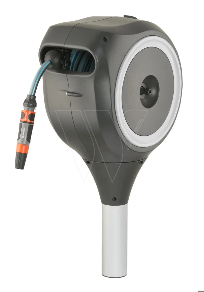 U kunt uw kleine tuin eenvoudig bewateren met maximale bewegingsvrijheid. Hij staat op een stevige metalen pen, zodat u hem overal in uw tuin kunt plaatsen zonder een muur te beschadigen. De grondpen wordt met een montagestang in de grond geschroefd en is daarom extreem stabiel. Voor gebruik hoeft u de tuinslang alleen maar uit te rollen tot maximaal 15 meter en kunt u meteen beginnen met bewateren.