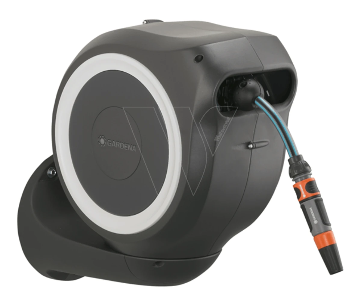 Door lichtjes aan het uiteinde van de slang te trekken, wordt de vergrendeling ontgrendeld en een ingebouwde stalen veer met innovatieve RollControl-technologie zorgt voor soepel en gecontroleerd oprollen. De RollControl beschermt de slangenbox en de omgeving tegen schade als gevolg van het te snel inrollen. Om knikken of knopen in de slang te voorkomen, heeft de box een geïntegreerde slanggeleider. Dankzij de slang- en kraanaansluitingen van het Original GARDENA System kunt u eenvoudig en flexibel een verlengstuk of ander compatibel GARDENA element op de slang aansluiten.